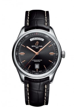 Il Breitling Premier Automatic 40 – indica il brand – è un capolavoro di stile all’insegna della discrezione. Forse più di qualsiasi altro orologio della nuova collezione, richiama gli eleganti modelli Breitling degli anni ‘40. Nella sua cassa in acciaio batte il Calibro Breitling 37, un movimento cronografico meccanico a carica automatica. È disponibile con quadrante antracite, blu o argento. Tutti i quadranti si possono abbinare a un cinturino di pelle di coccodrillo o nabuk oppure a un bracciale in acciaio. Il quadrante semplice è coronato da una minuteria bianca e sfoggia un piccolo elegante contatore di secondi a ore 6.