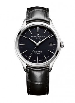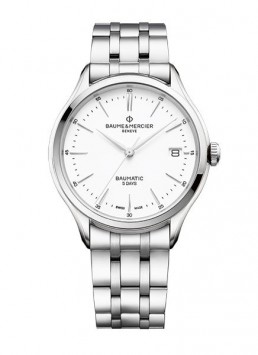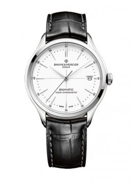 Ecco che, a partire da 2.600 euro (prezzo di listino) il Clifton Baumatic 10436 da uomo è un orologio automatico con data e movimento meccanico a carica automatica della Manifattura. La sua estetica equilibrata accosta l’intramontabile cinturino in pelle di alligatore nera al quadrante bianco con indici di ore e minuti e la tipica finestrella della data a ore 3. La cassa in acciaio è completata dal fondello in vetro zaffiro trasparente che lascia ammirare il movimento automatico COSC (istituzione ufficiale svizzera che svolge test cronometrici).