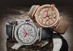 Non ultima, arriva con il 2018 la nuova collezione LVCEA, ancora più ricca, ancora più sfavillante di luci e colori. Note metalliche e motivo a mosaico, increspato da diamanti disposti attorno alla corona, sul finale del cinturino e a segnare le ore nel quadrante, parlano dell’Impero romano d’Oriente nella collezione LVCEA MOSAIQUE: basta uno sguardo e siamo a Bisanzio. Più discreta ma ugualmente affascinante la collezione LVCEA illumina il tempo avvolgendo il polso con seducente bellezza grazie a un orologio che rende omaggio alle antiche meridiane romane con un design dal fascino contemporaneo, sottolineato dal tocco glamour di un cabochon di pietra rosa con diamante applicato sulla corona.