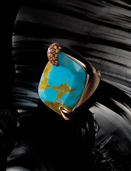 Per festeggiare i suoi primi 50 anni, Pomellato presenta un’inedita interpretazione della Collezione Ritratto che diventa cornice perfetta per pietre dure dal fascino sorprendente: 50 gioielli in cui il “Portrait-Cut” della pietra centrale – un antico taglio indiano di grandi dimensioni che veniva utilizzato per coprire ritratti e miniature – riserva al racconto della pietra dura lo spazio ideale. Il taglio di ciascuna pietra è stato posizionato sulle gemme alla ricerca di quella precisa porzione in cui la convergenza della densità dei colori, delle venature e della semitrasparenza, fosse perfetta. Ciascun anello è un “quadro”, un preciso e appassionante racconto cui partecipa anche la voluminosa griffe, che da elemento funzionale diviene decorativo, in pavé di pietre preziose: dalle tormaline Paraiba alle haüynes, dagli smeraldi ai diamanti brown, dai rubini agli zaffiri.