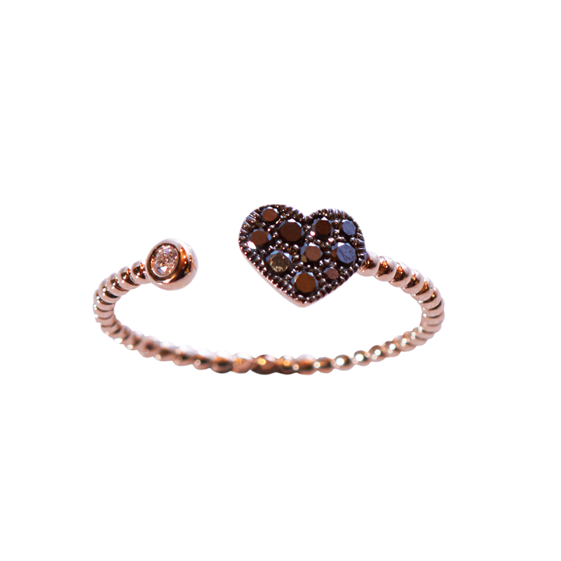 Anello cuore in oro giallo gr. 01,76 con diamanti brown 0,15 e diamante 0,02