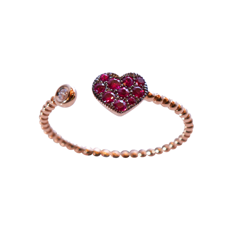 JUST LOVE – ANELLO CUORE ORO DIAMANTI E RUBINI