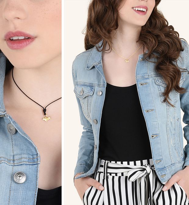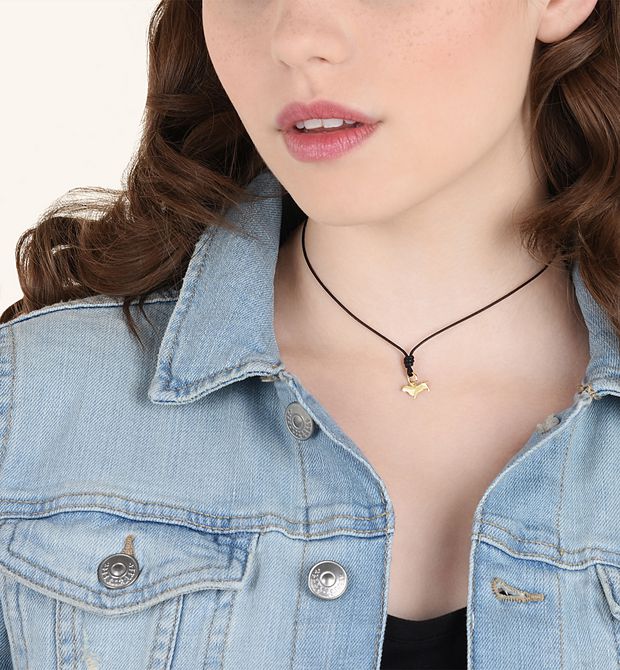 Ciondolo in oro giallo 18 kt. Cordino nero incluso.
