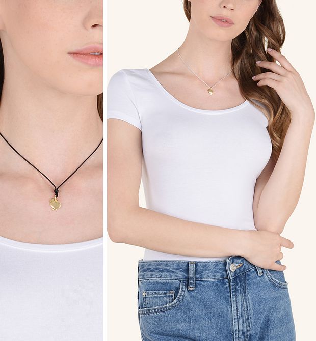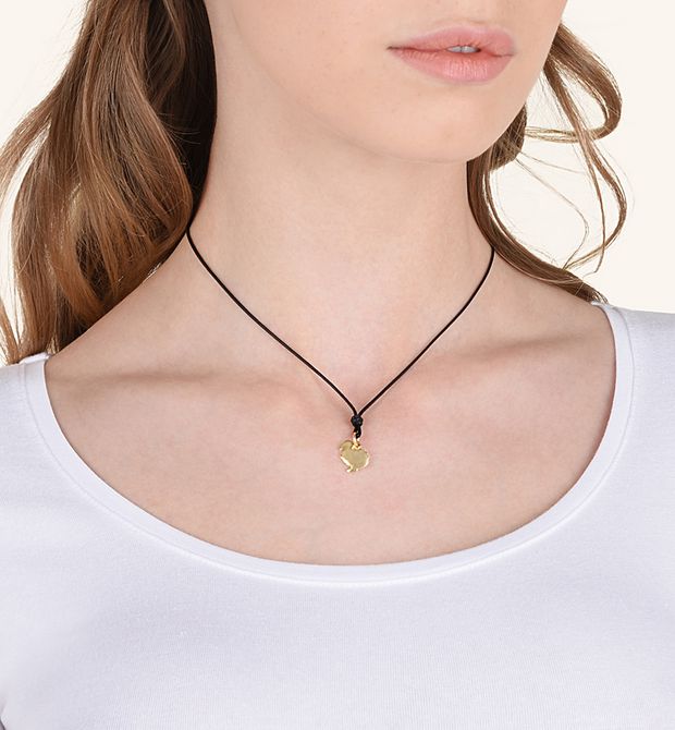 Ciondolo in oro giallo 18kt. Cordino nero incluso.