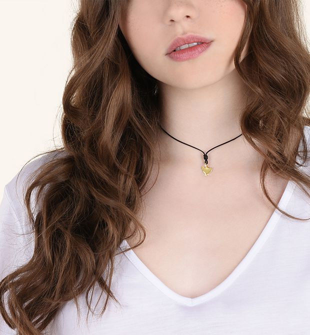 Ciondolo in oro giallo 18 kt. Cordino nero incluso.