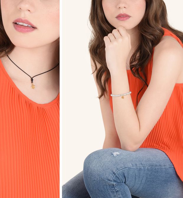 Ciondolo in oro giallo 18 kt. Cordino nero incluso.
