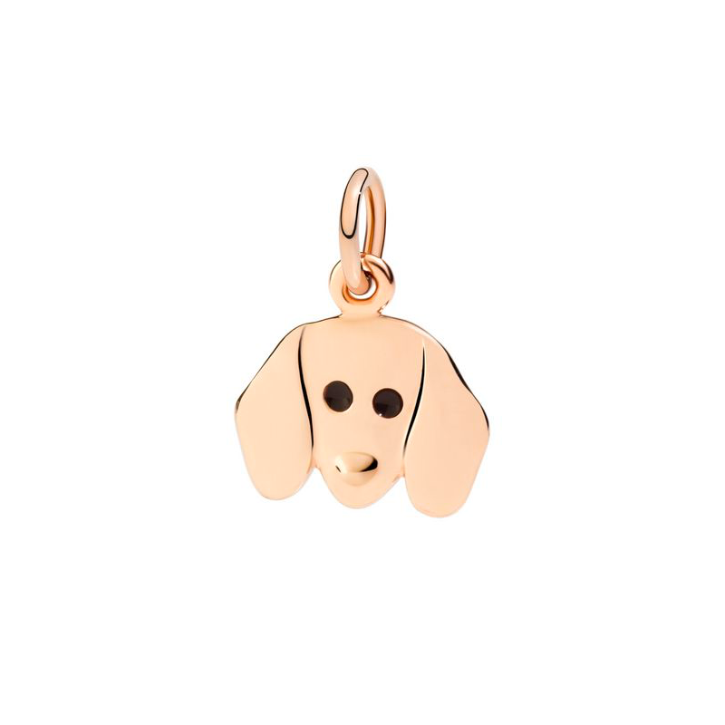Tanto carattere in formato pocket. Ciondolo in oro rosa 9 kt e smalto marrone scuro. Ciondolo in acciaio per collare e cordino nero inclusi.