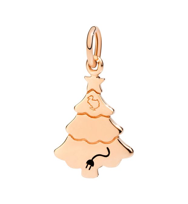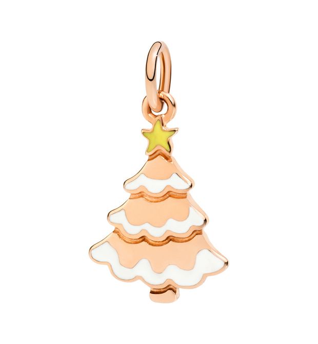 Ciondolo albero di natale in oro rosa 9 kt, con smalti bianco, nero e giallo fluorescente. Cordino nero incluso. EDIZIONE LIMITATA.
