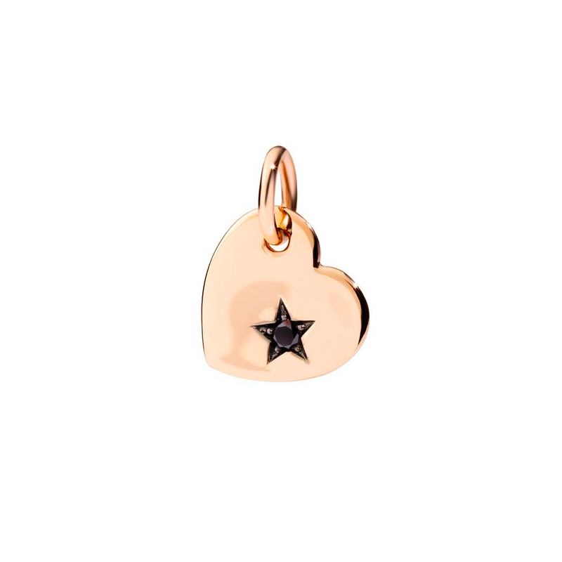 Ciondolo in oro rosa 9 kt e un diamante black. Cordino rosso incluso. La superficie del cuore è irregolare.