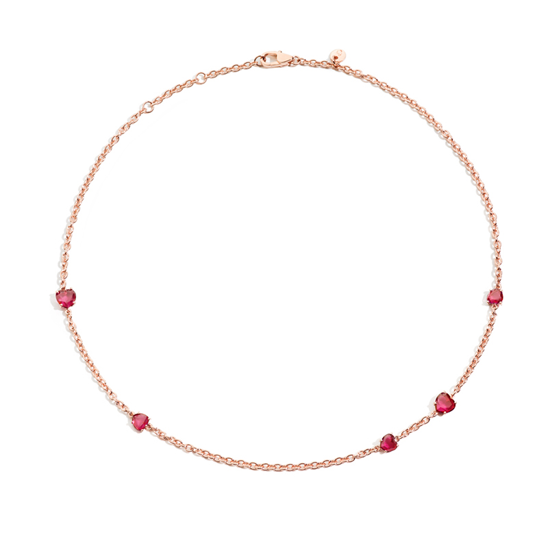oro rosa nove carati con cuori in rubino sintetico – Misura unica – Vestibilità cm 38 – 40 – 42