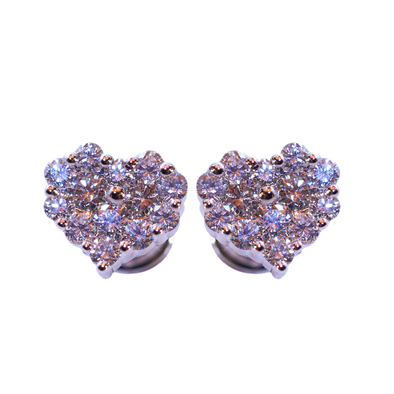Orecchini a cuore in oro bianco gr. 03,34 e 28 diamanti bianchi 1,16