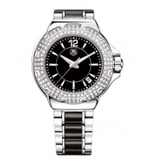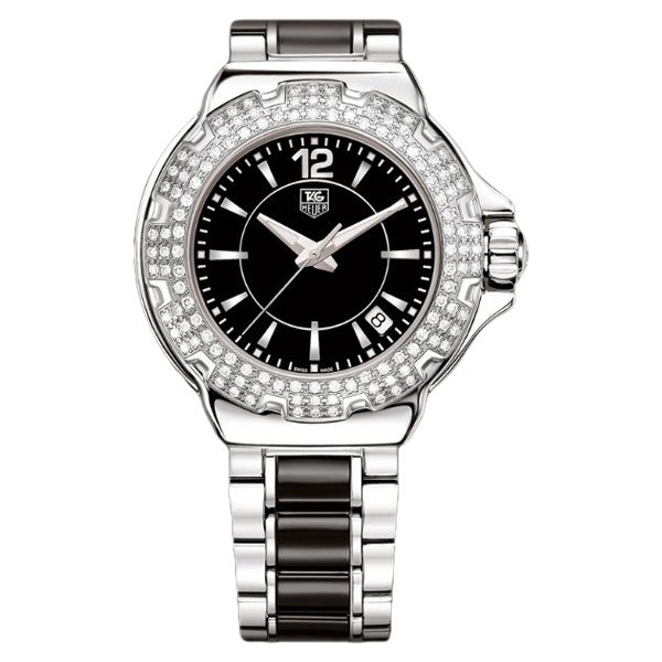 Questo modello è in grado di fare letteralmente risplendere una donna. La lunetta lucida è lussuosamente tempestata con 120 diamanti Wesselton (0,75 carati in totale). Grazie al quadrante bianco o nero e al cinturino in acciaio e ceramica, riflette alla perfezione la fusione femminile tra forza ed eleganza.