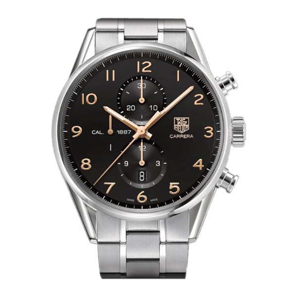 Questo cronografo 43 millimetri riassume la naturale eleganza della gamma Carrera. La cassa in acciaio lucido è un trionfo del design raffinato. Color oro rosa numeri arabi accentuano il nero intenso o l’elegante d’argento del quadrante minimalista. Il cronografo perfetto per gli uomini che sanno dove stanno andando e come arrivarci.