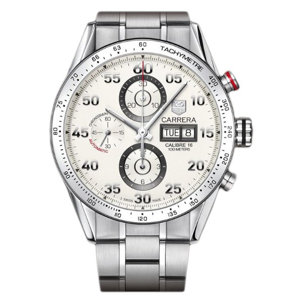 Elevata funzionalità e stile maschile sono tra le caratteristiche principali di questo Cronografo Automatico Calibre 16, dedicato agli appassionati delle corse automobilistiche. Oltre all’esclusiva funzione Day-Date posizionata a ore 3, realizzato con tecnologie di punta, il movimento automatico Calibre 16 consente di rilevare le ore, i minuti e i secondi cronografici. Grazie al rehaut aperto, ai dettagli rossi e ai numeri di grandi dimensioni, questo segnatempo assicura una lettura molto più agevole. Il fondello in vetro zaffiro, infine, consente di ammirare il meraviglioso movimento in azione.