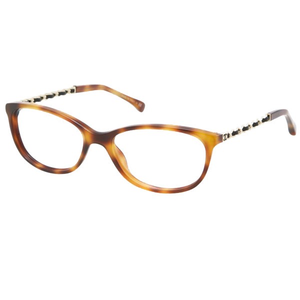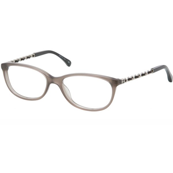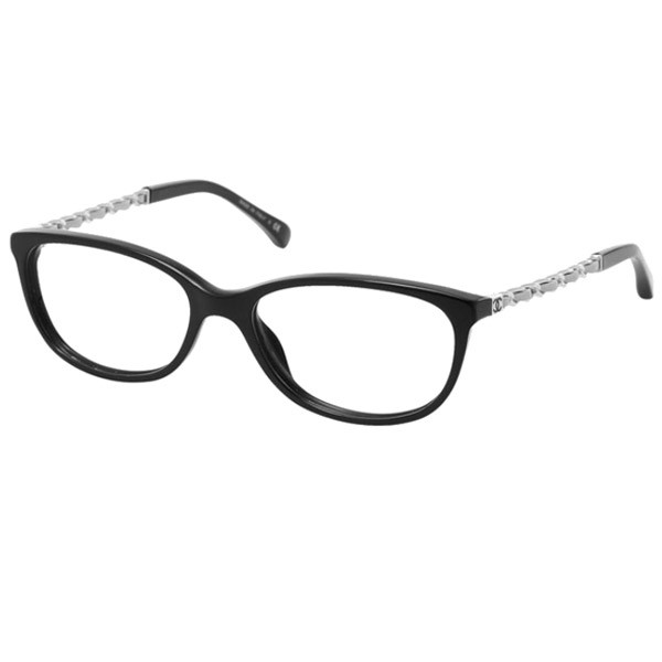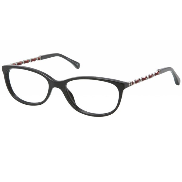 Montatura ovale in acetato, astine fini in catena intrecciate di pelle con logo CC in vernice