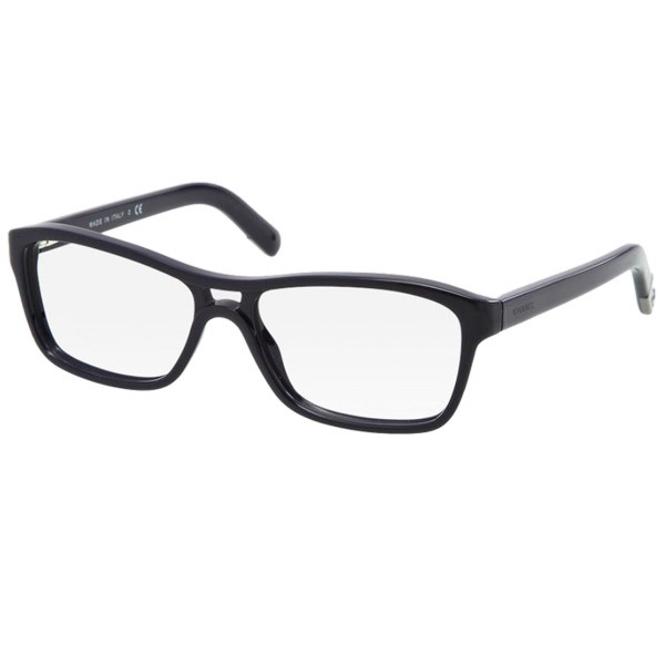 Occhiali quadrati in acetato con doppio ponte. Punte sulle astine in metallo con logo CC e un piccolo logo CHANEL sulla parte anteriore delle astine stesse.