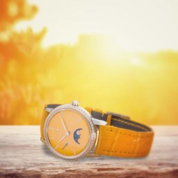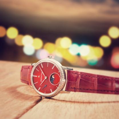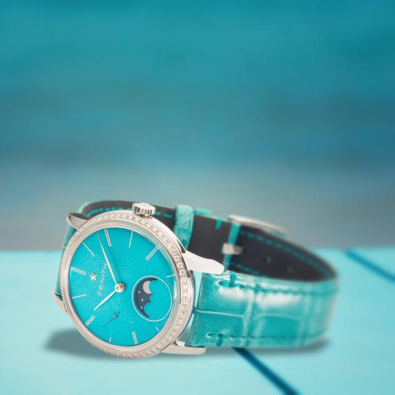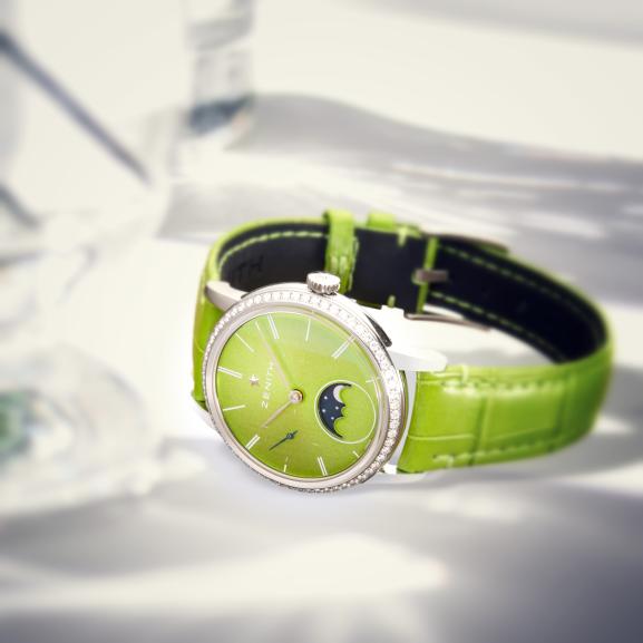La collezione Elite di Zenith si arricchisce di un vivace modello. E’ l’Elite Lady Moonphase, orologio gioiello disponibile nei colori più vibranti dell’estate: giallo, verde mela, turchese e rosso. Colori accattivanti riproposti su quadrante e sul cinturino in alligatore con fodera di protezione in caucciù e fibbia ad ardiglione in acciaio inossidabile. La cassa è preziosa: in acciaio inossidabile, ha la lunetta tempestata di diamanti. Elementi che rendono il nuovo Elite Lady Moonphase un orologio elegante, accattivante e contemporaneo. Ad esaltarne la valenza modaiola è la funzionalità: racchiuso nella sua finissima cassa 33mm batte, alla frequenza del calibro automatico Elite 692, un movimento ultrasottile di soli 3,97 mm, costituito da 195 componenti, con una riserva di carica di oltre 50 ore e una frequenza di 28.800 alternanze/ora. Caratteristiche che si rivelano nel vivace quadrante con indicazione delle ore, minuti, piccoli secondi e fasi lunari.